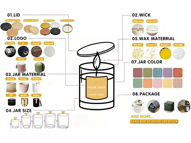 Equipped with a strong R&D team, advanced production equipment, exquisite manufacturing technology, scientific management system and superior working environment, DUC VY factory offers comprehensive OEM & ODM services, dedicated to meeting all your customized needs for candles and scented candles. We can fully customize every aspect of the product according to your requirements, including wax material, wick type, fragrance, color, shape, container, logo, and packaging.