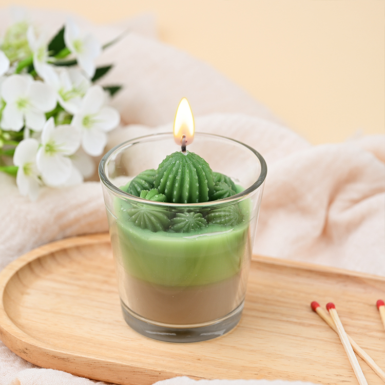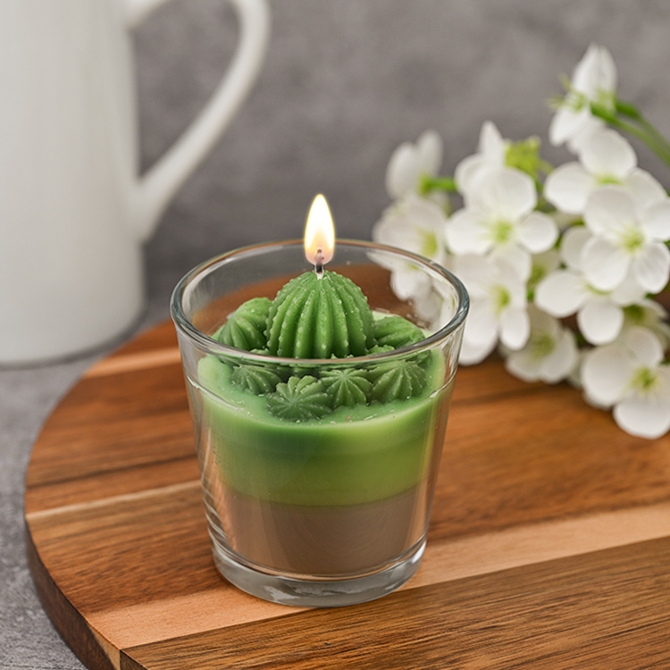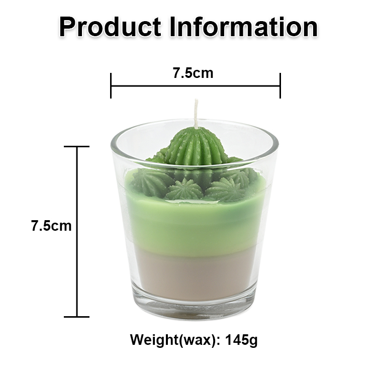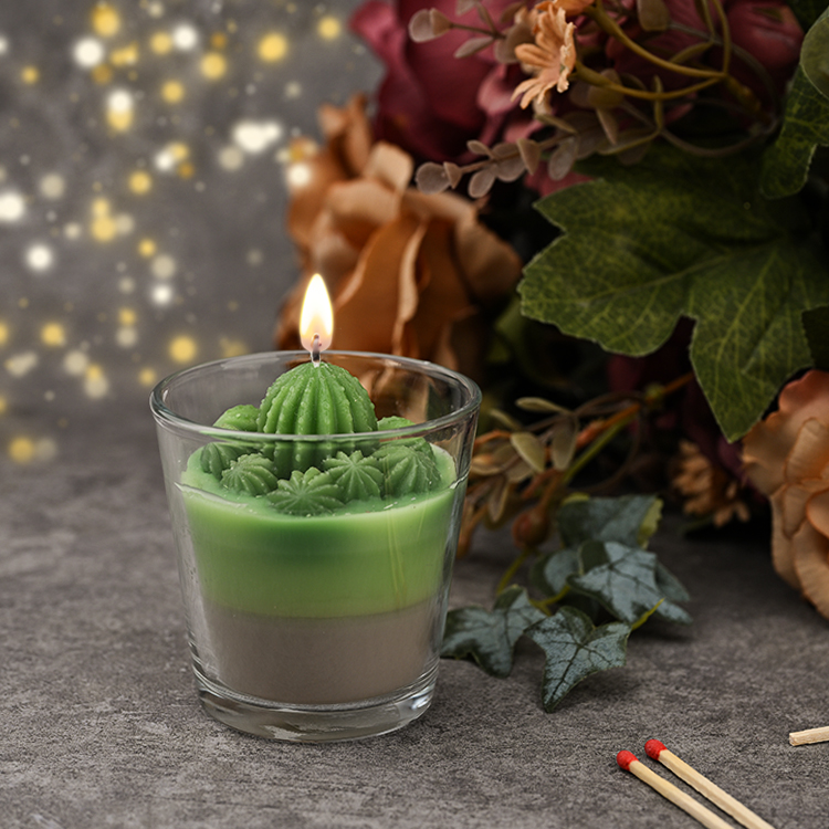 This custom cactus candle is made with soy wax, beeswax, coconut wax, a cotton wick, and fresh fragrance, and decorated with a wax pattern to adorn your home.