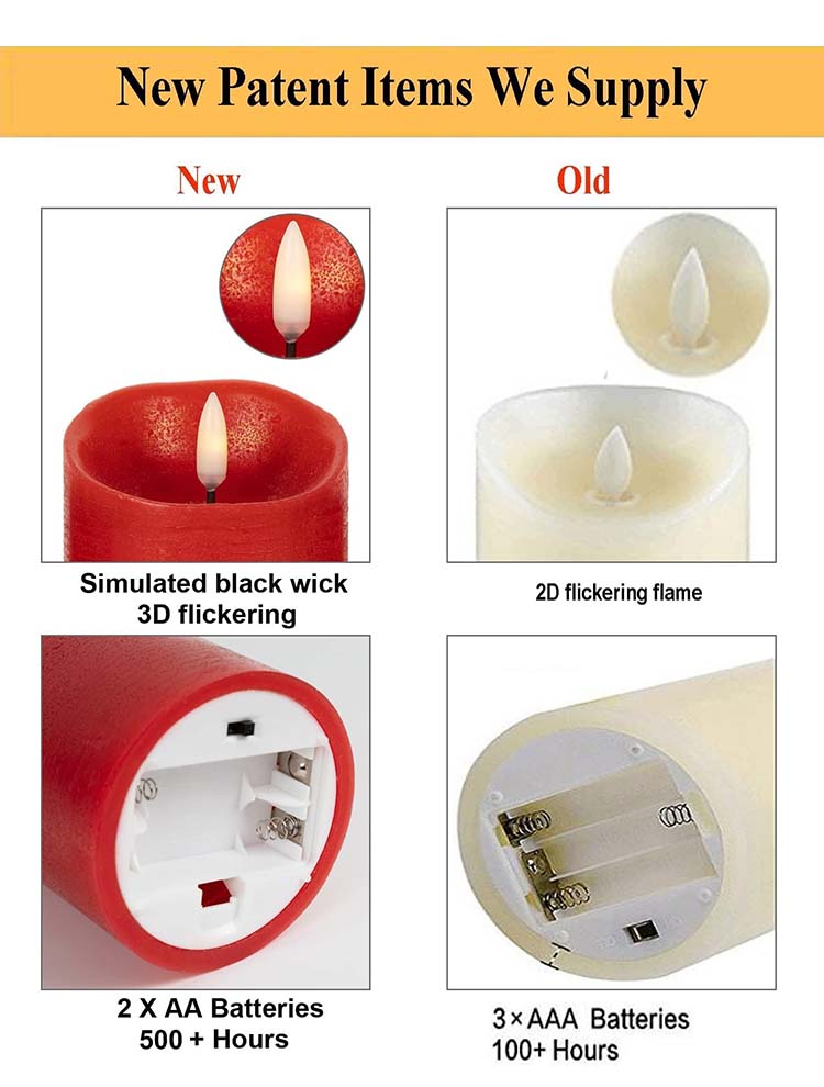 This set of three red battery-powered flameless LED candles features a realistic wax shell and a 3D simulated black wick. Measuring 3 inches x 4 inches, 3 inches x 5 inches, and 3 inches x 6 inches respectively, they are suitable for event and party tables without the risk of open flame. These flameless pillar candles are perfect for placement on fireplace mantels, lanterns, or festive decorations (especially suitable for Christmas).
