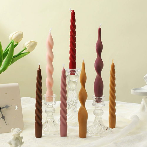 Crafted from 100% natural soy wax, these twisted spiral long-stem candles feature an artistic, textured design paired with soft macaron color palettes (blush, chocolate, burgundy, warm tan, etc.). When lit, they release a subtle, soothing fragrance—perfect for elevating wedding decor ambiance while letting guests take home a piece of the romantic vibe.